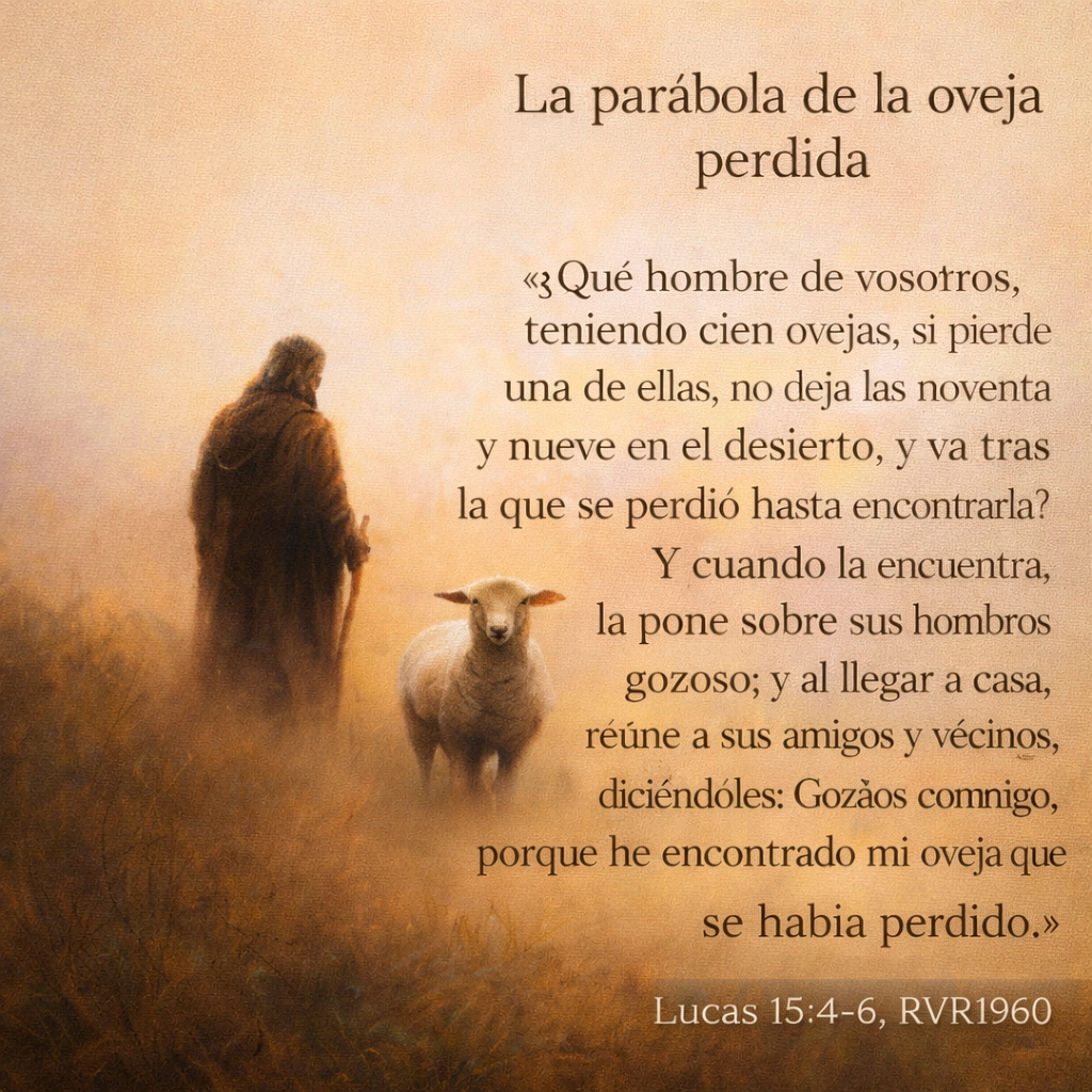 📖 Inspirado en la parábola de Lucas 15:3-7, este cuadro representa el momento en que Jesús encuentra a la oveja perdida, reflejando el mensaje de esperanza, perdón y amor incondicional hacia quienes se alejan y luego vuelven al camino.