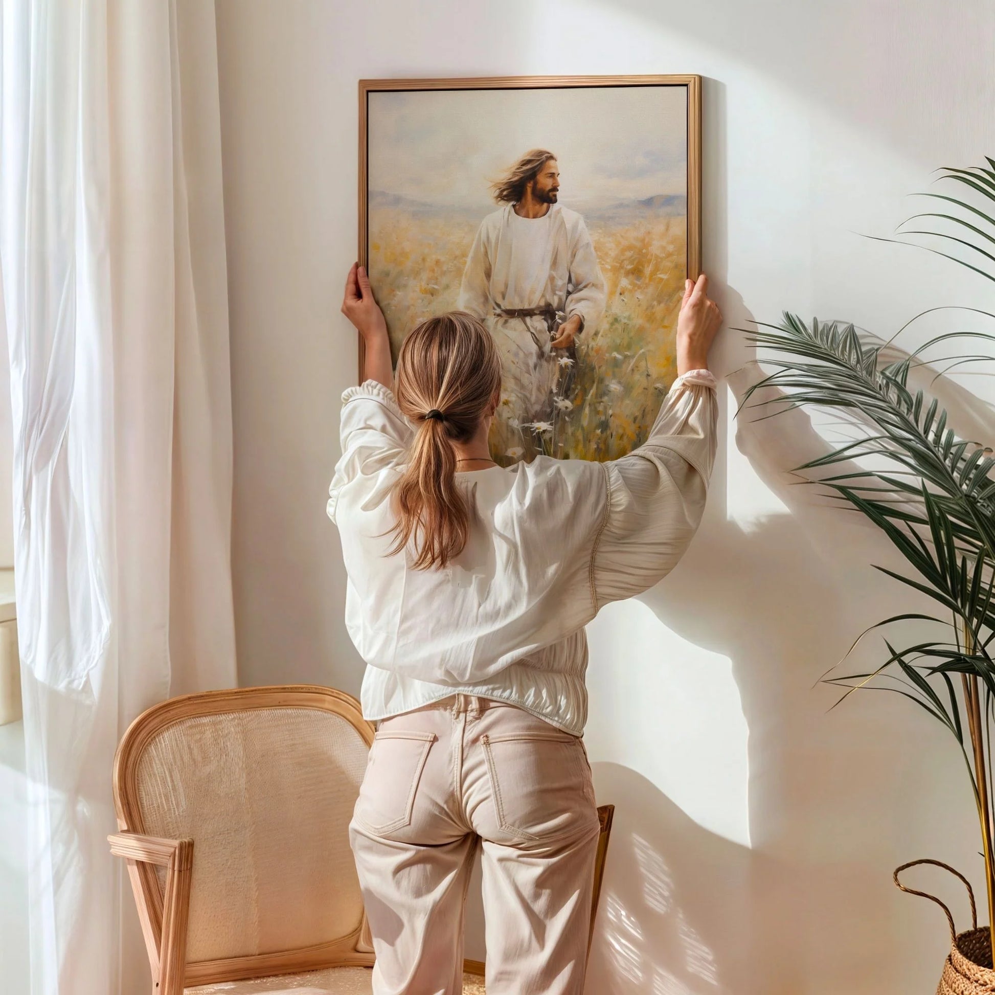 📖 Inspirado en la parábola de Lucas 15:3-7, este cuadro representa el momento en que Jesús encuentra a la oveja perdida, reflejando el mensaje de esperanza, perdón y amor incondicional hacia quienes se alejan y luego vuelven al camino.Una pieza que invita a la reflexión y a la conexión espiritual, ideal para hogares que buscan transmitir paz y fe.