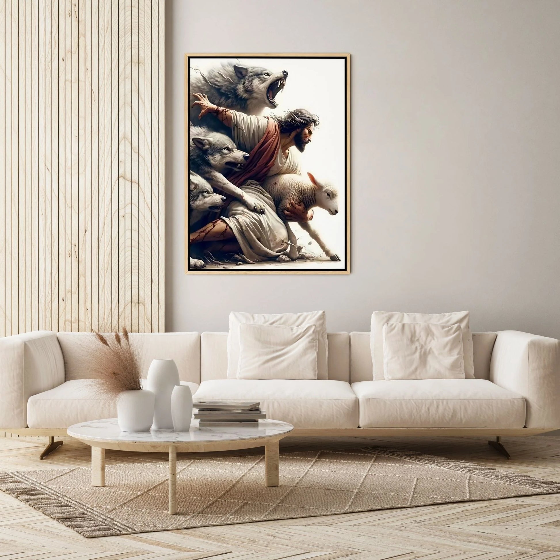 Jesus protegiendo a una oveja de lobos - Cuadros