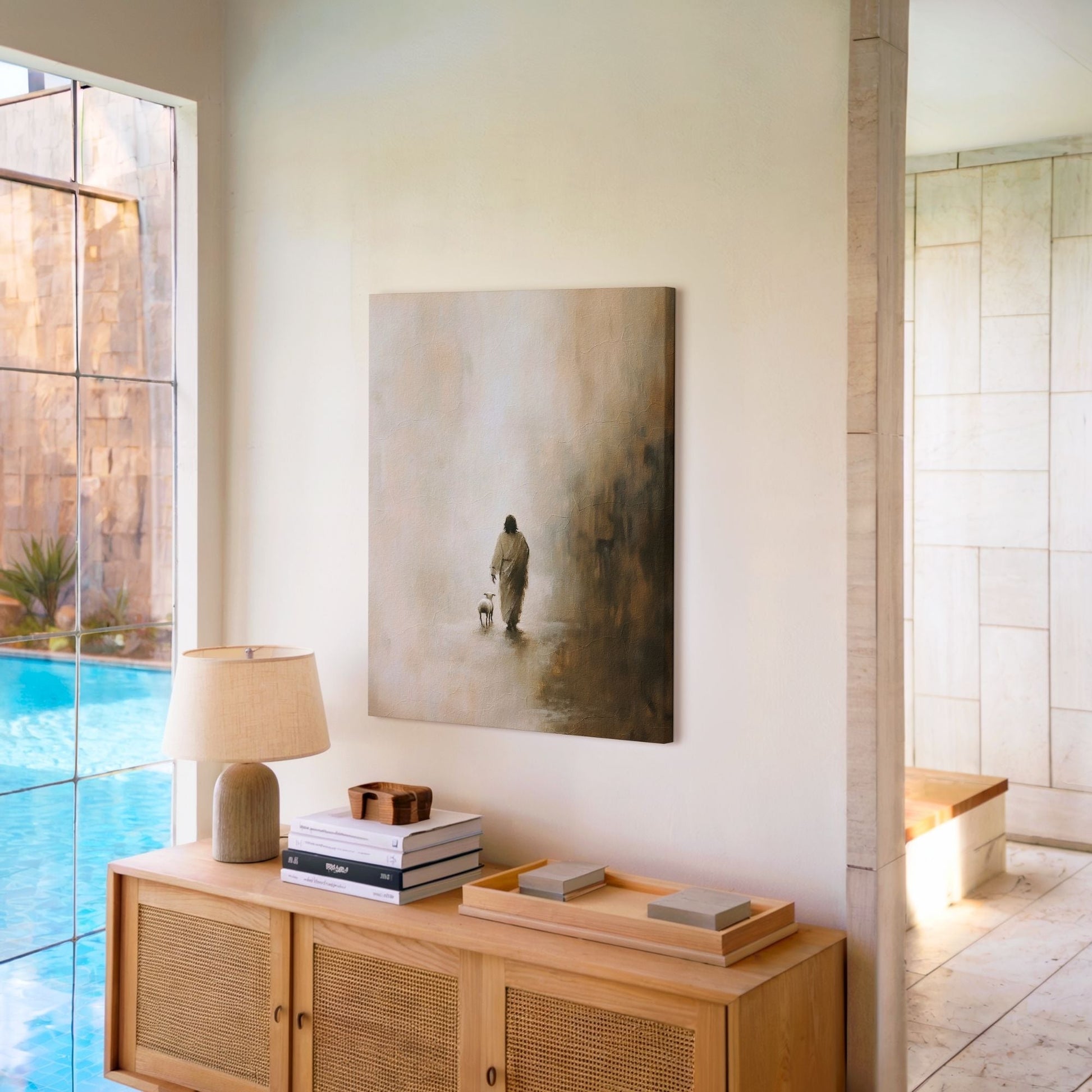 📖 Inspirado en la parábola de Lucas 15:3-7, este cuadro representa el momento en que Jesús encuentra a la oveja perdida, reflejando el mensaje de esperanza, perdón y amor incondicional hacia quienes se alejan y luego vuelven al camino.Una pieza que invita a la reflexión y a la conexión espiritual, ideal para hogares que buscan transmitir paz y fe.