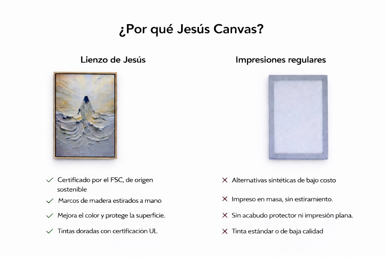 Elegí entre un diseño sin marco o con marco premium. Ambos ofrecen una estética moderna y sin costuras que se adapta a cualquier espacio sagrado.